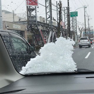 ※車が止まる度に天井の雪がフロントに滑り落ちる…。